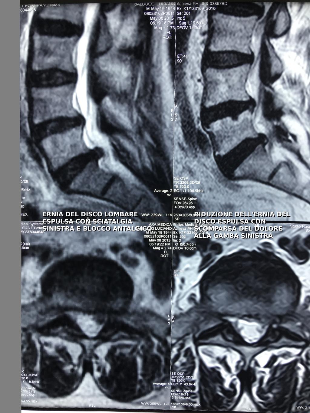 In questa immagine: Ernia disco lombare L5-S1 sinistra trattata con ossigeno ozonoterapia